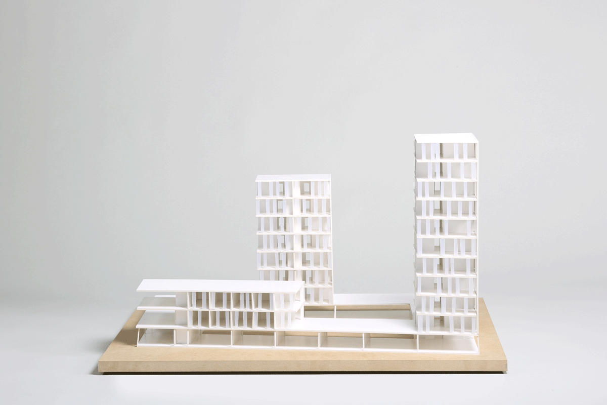 Im Rahmen der übergeordneten Fragestellung »Wie lässt sich die Stadt verdichten, um Wohnraum zu schaffen?« widmet sich die Entwurfsaufgabe einer spezifischen städtebaulichen Situation: Ausgangspunkt des Entwurfes ist das gesamte Areal des südlichen Hansaviertels in Berlin, das im Rahmen der Ausstellung Interbau 1957 errichtet wurde und als Ikone des »Neuen Bauens« galt. Nicht nur in Anlehnung an diesen Charakter des »Wohnlabors«, sondern auch aufgrund seiner besonderen Präsenz in der Geschichte und im urbanen Gefüge eignet sich der Ort für eine typologische Entwurfsuntersuchung an unterschiedlichen Orten.