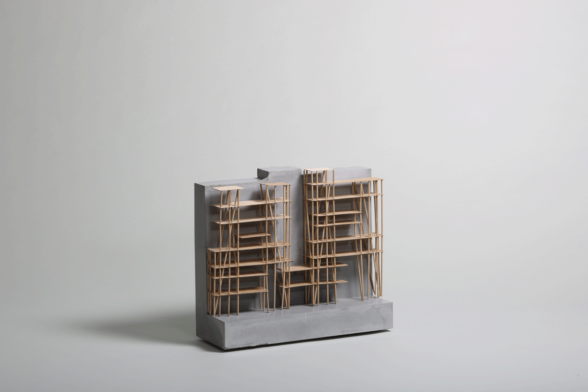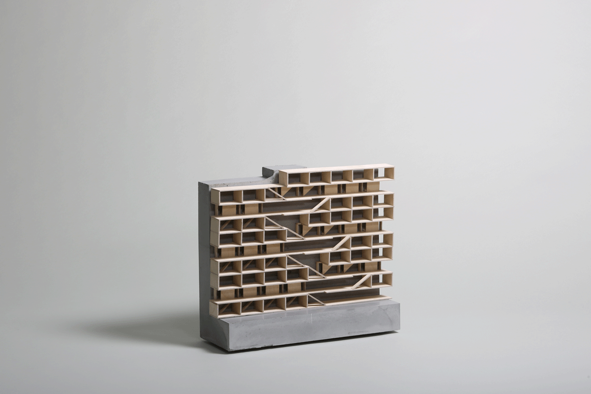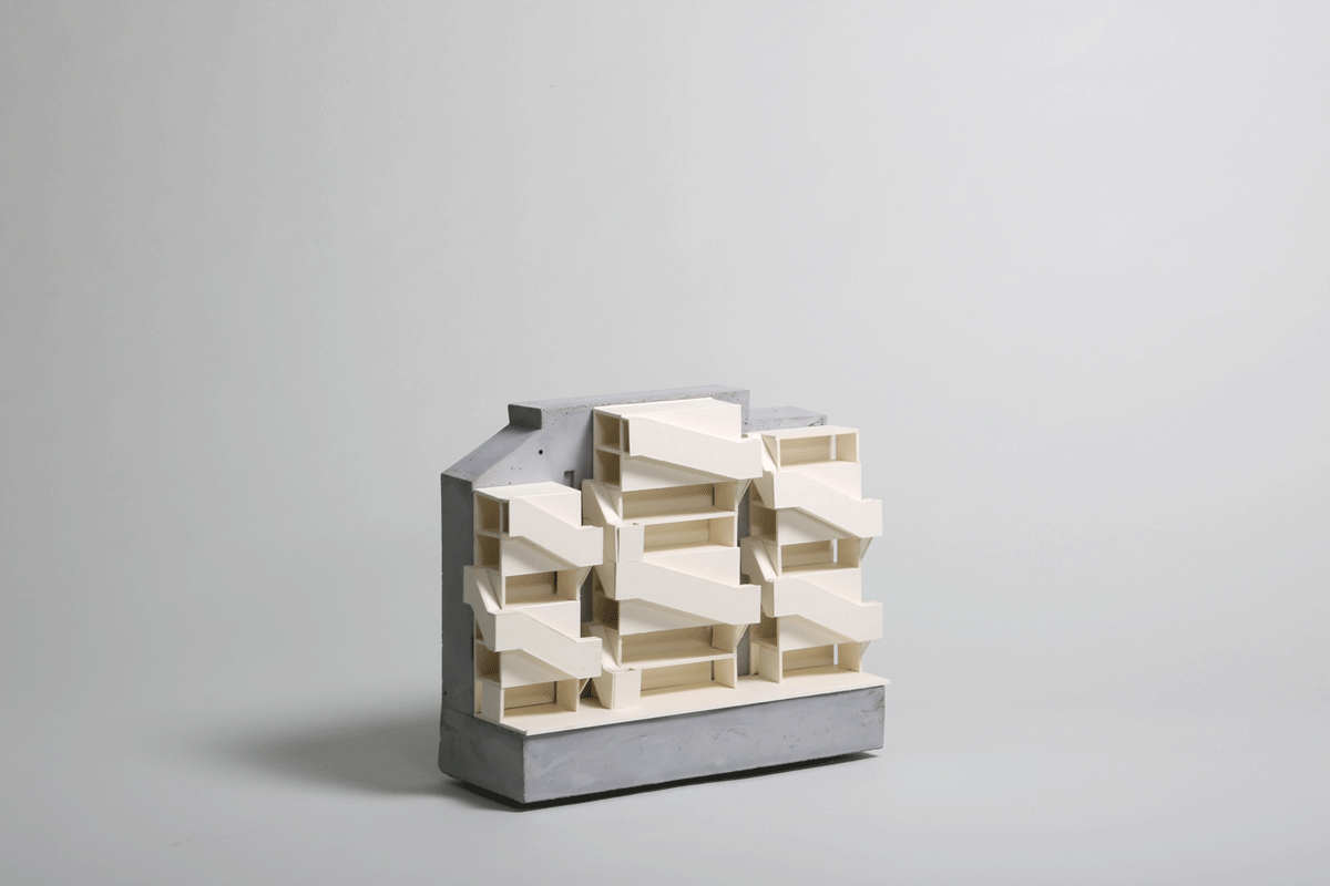 Brandwände kennzeichnen das urbane Gefüge Berlins. Durch Krieg, Abbruch oder Brand wurden vielerorts die Giebelseiten der Blockbauten freigestellt. Oft entstanden auf den angrenzenden Freiflächen im Laufe der Zeit öffentlich genutzte Räume: Spiel- und Sportplätze, kleine Park ächen oder temporäre Zwischennutzungen. Diese öffentlichen Räume bilden längst einen wesentlichen Aspekt der jeweiligen Kiezstruktur und sind in ihrer frei- räumlichen Qualität nicht mehr aus den Quartieren wegzudenken. Darüber hinausgehend bergen die angrenzenden ‚blinden‘ Brandwände ein hochwertiges Wohnpotential, da sie direkt an den Freiraum anschließen und dessen Qualitäten nutzen können. Ausgangspunkt für den Entwurf ist die Frage, wie in diesen zentralen städtischen Lagen durch punktuelle Nachverdichtung Wohnräume für neuankommende Studierende geschaffen und gleichzeitig die öffentlichen Räume erhalten werden können.