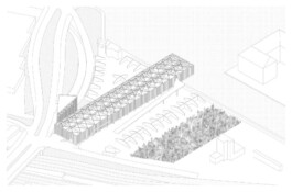 Boden ist die wertvollste Ressource der Stadt. Um diese sinnvoll zu nutzen, kurze Wege und eine effiziente Infrastruktur im Gebäude zu gewährleisten, gliedert sich der Entwurf durch kompaktes Stapeln in zwei Gebäudeteile. Einen Turm mit administrativen und repräsentativen Funktionen sowie einem Riegel mit Forschung, Wetter-geschütztem Depot und Materialaufbereitung. Die dadurch eingesparte Fläche bietet viel Platz für andere wichtige Aufgaben. Zum Beispiel eine großzügige Renaturierungsfläche mit Schnellholzgewächsen wie Birken,